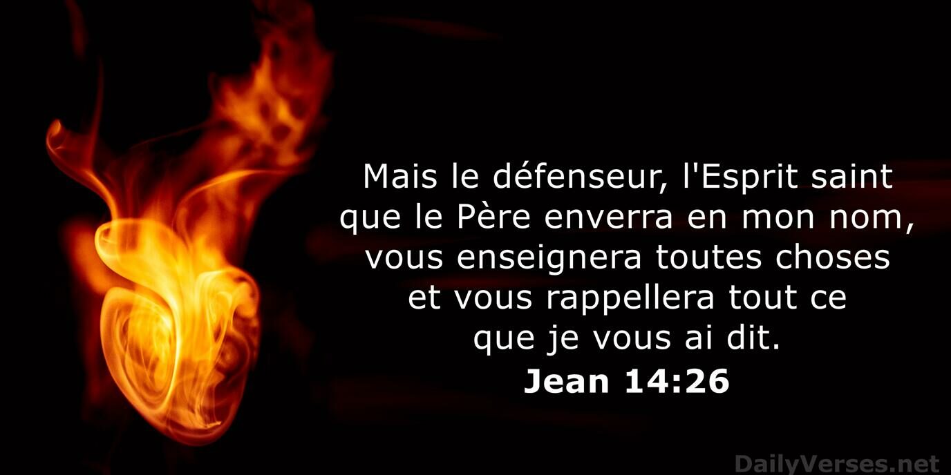 “Mais Le Défenseur, l’Esprit Saint que le Père enverra en mon nom, lui, vous enseignera tout, et il vous rappellera de tout ce que je vous ai dit”